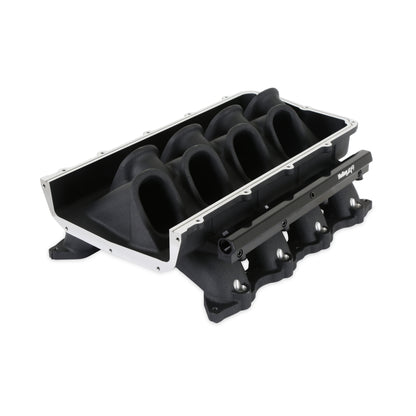 Finally, an affordable Coyote intake manifold that also performs! The Hi-Ram and Ultra Lo-Ram are designed to fit stock bolt pattern OE heads found on the 2011-2023 Ford 5.0 Coyotes and related engine families, such as, Voodoo and Predators. These kits include fuel rails for use with OEM type fuel injectors and clips, mounting hardware, and O-ring gaskets. Offered in black and natural as-cast finish, both manifolds have a 9.20-inch runner length and are designed to improve the mid to high RPM powerband.